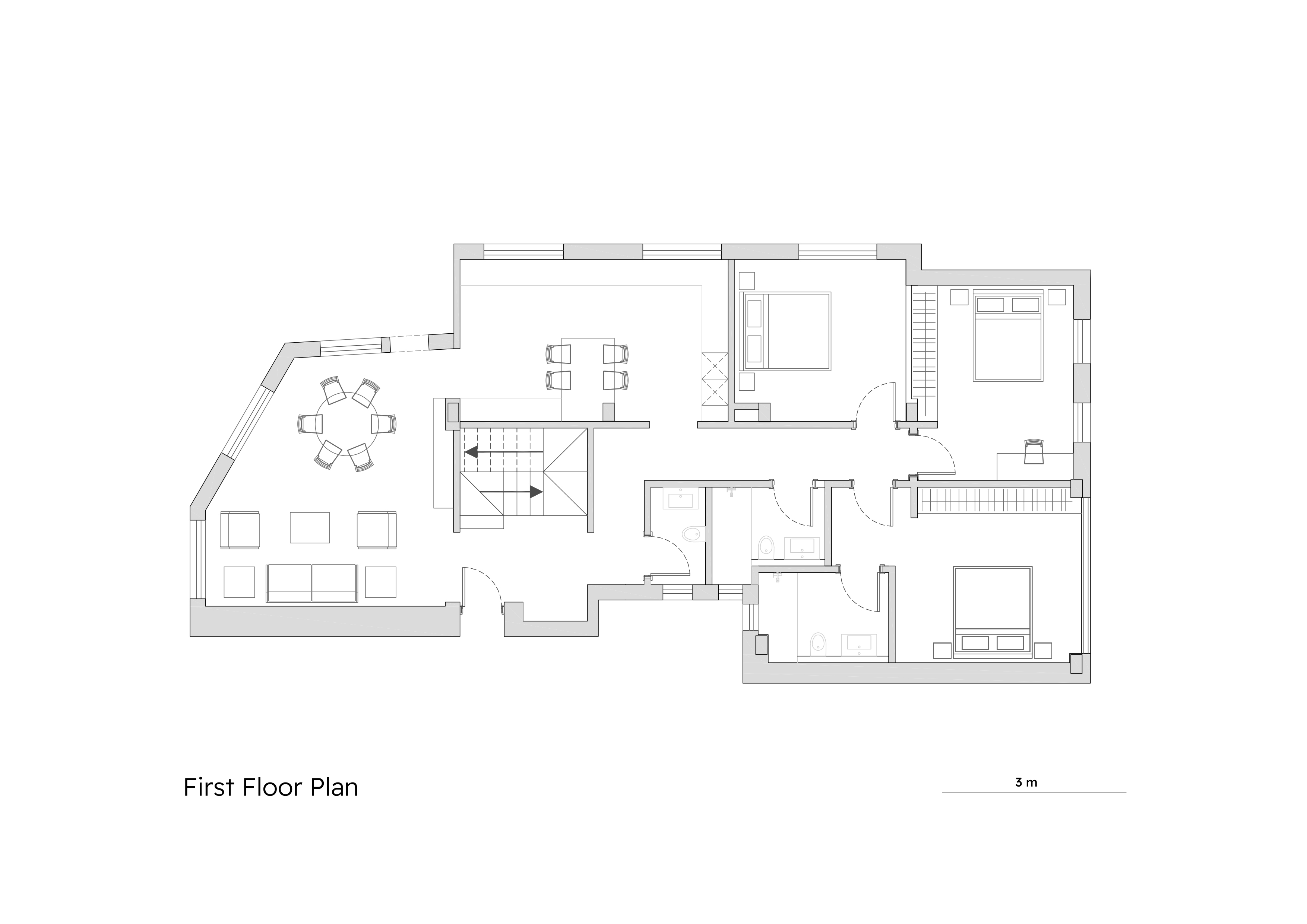 The main strategy for the renovation of the existing apartment was reorganizing both floors. The core of our intervention was the staircase and a roof structure on the second floor that allows direct contact with the surrounding views and opens to become a terrace within the living spaces.