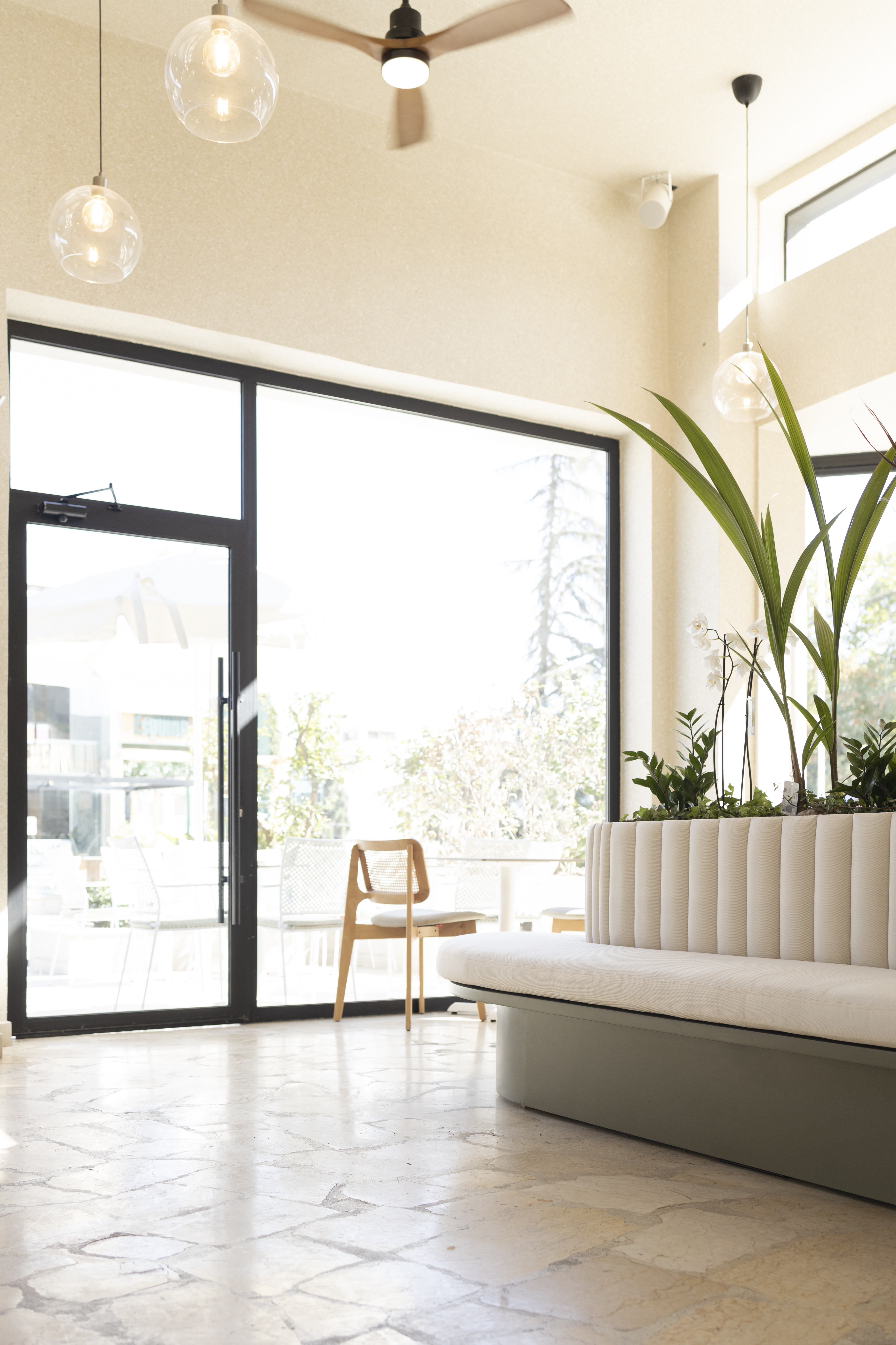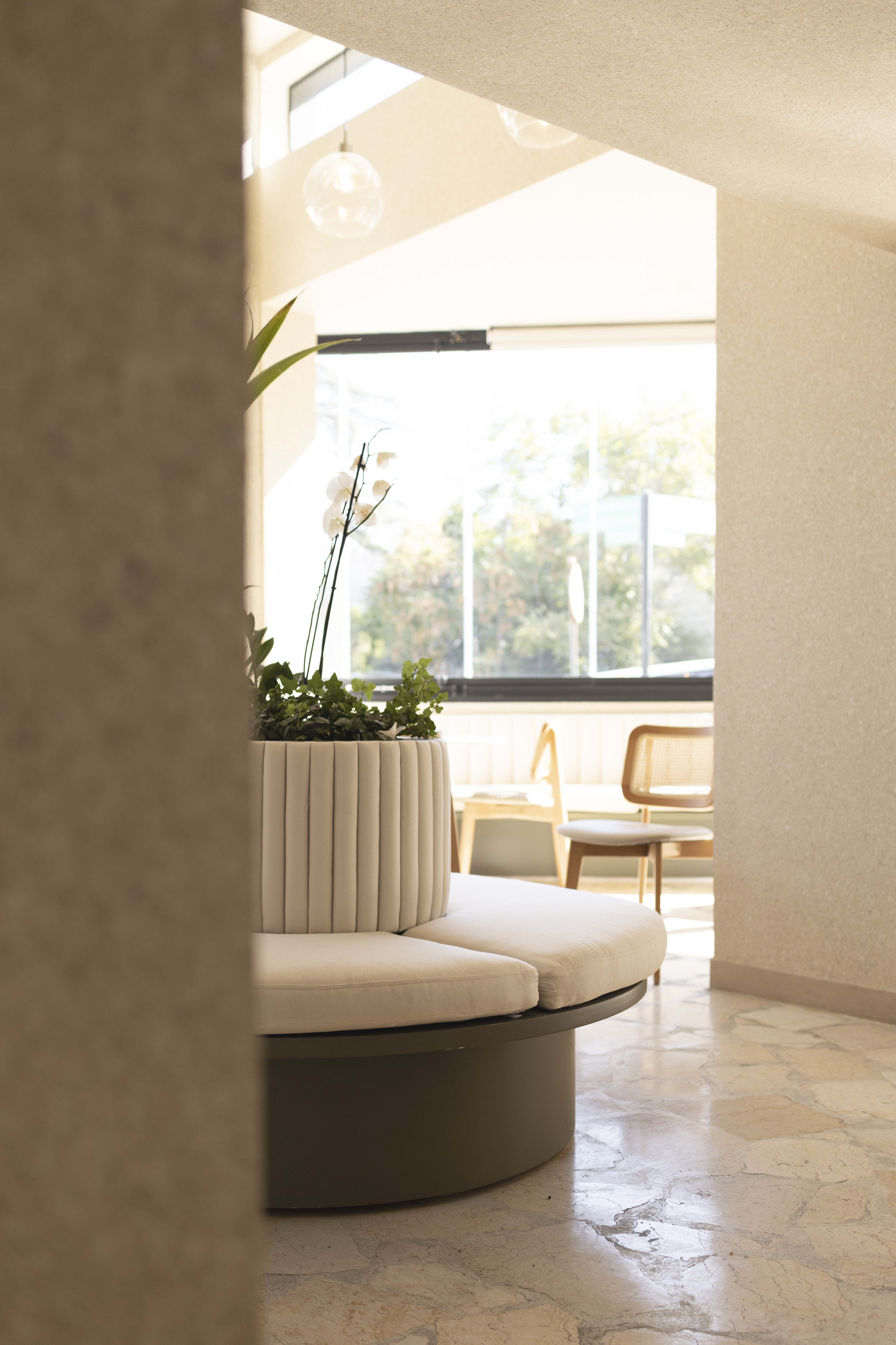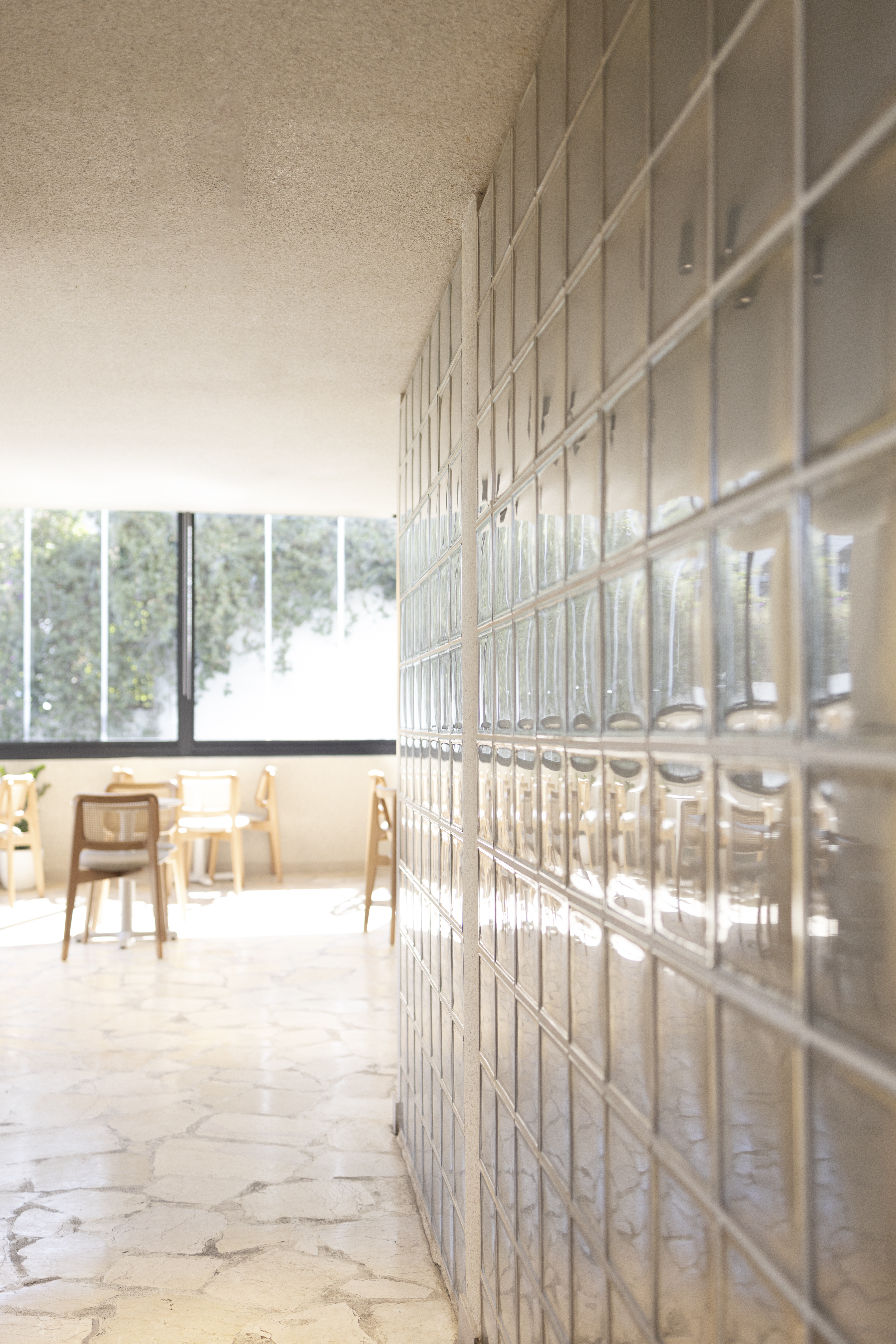 The layout emphasizes openness and connection. A fully glazed façade opens to flood the space with natural light, creating a continuous dialogue with the neighborhood. This transparency blurs the threshold between inside and outside, reinforcing the idea of the café as an extension of the city, a place that belongs to the street yet offers protection from its intensity.
